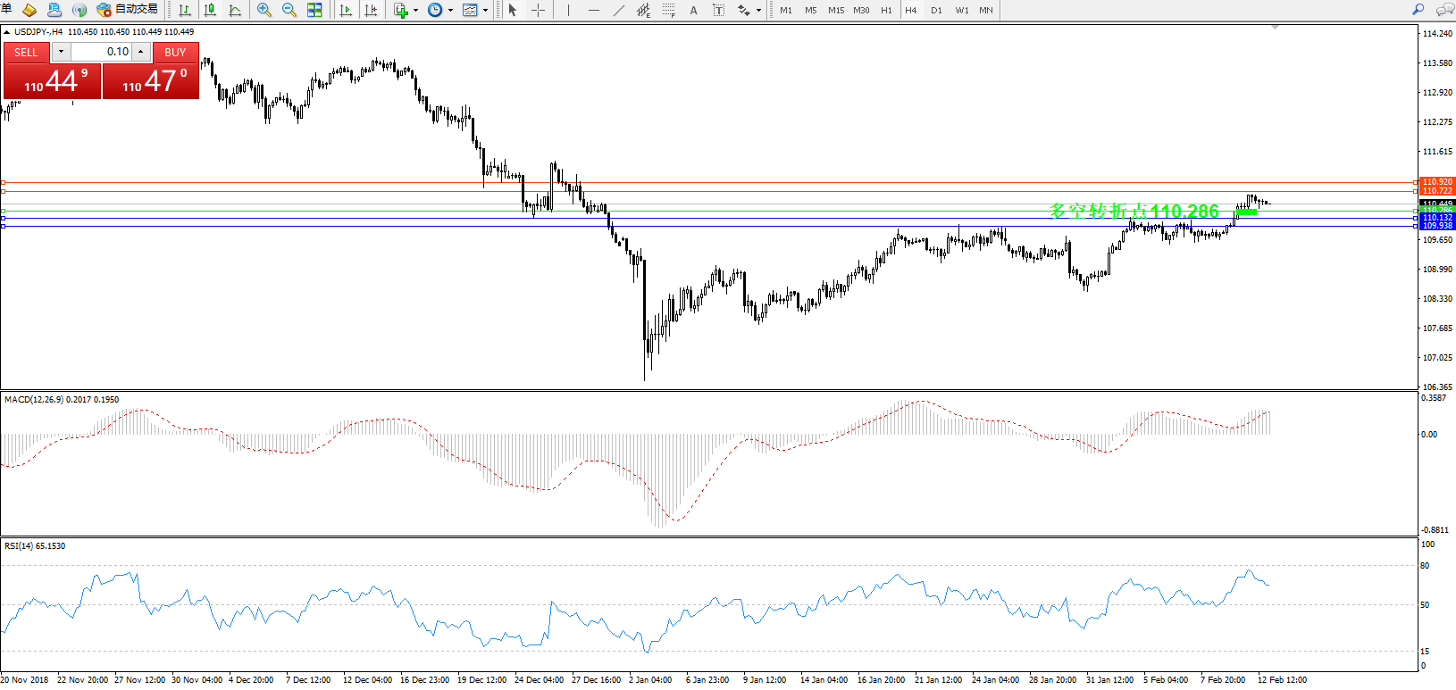 交易策略:110.286上方看涨,目标110.722、110.920