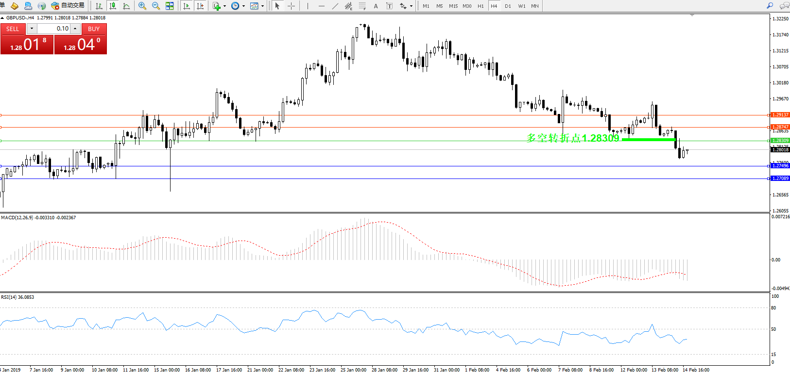 交易策略:1.28309下方看跌,目标1.27496、1.27089