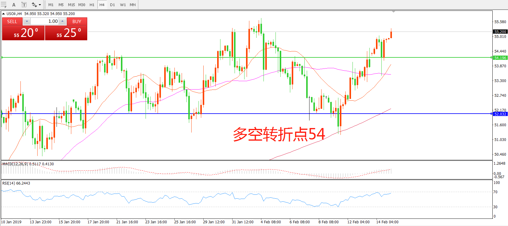 交易策略:在54.00之上看涨,目标57.00  60.00