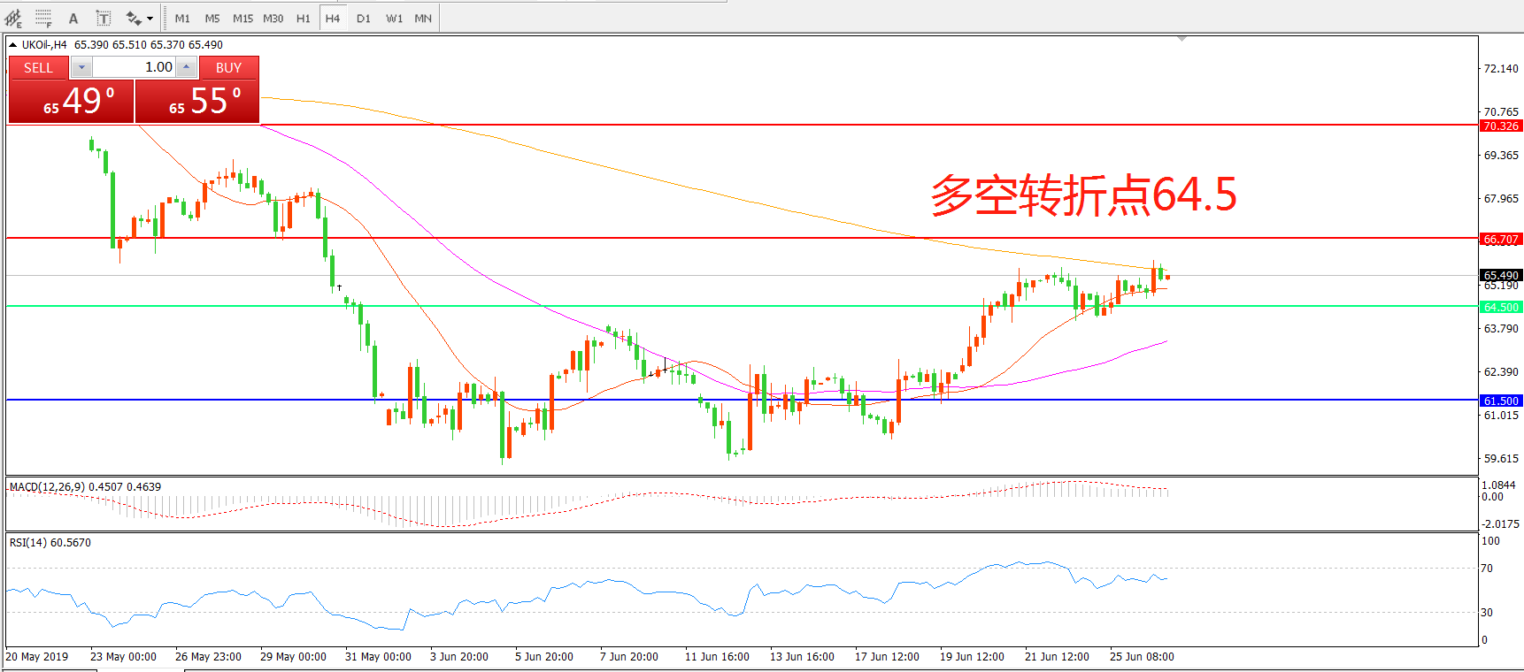 交易策略:在64.50之上看涨,目标66.70 70.00