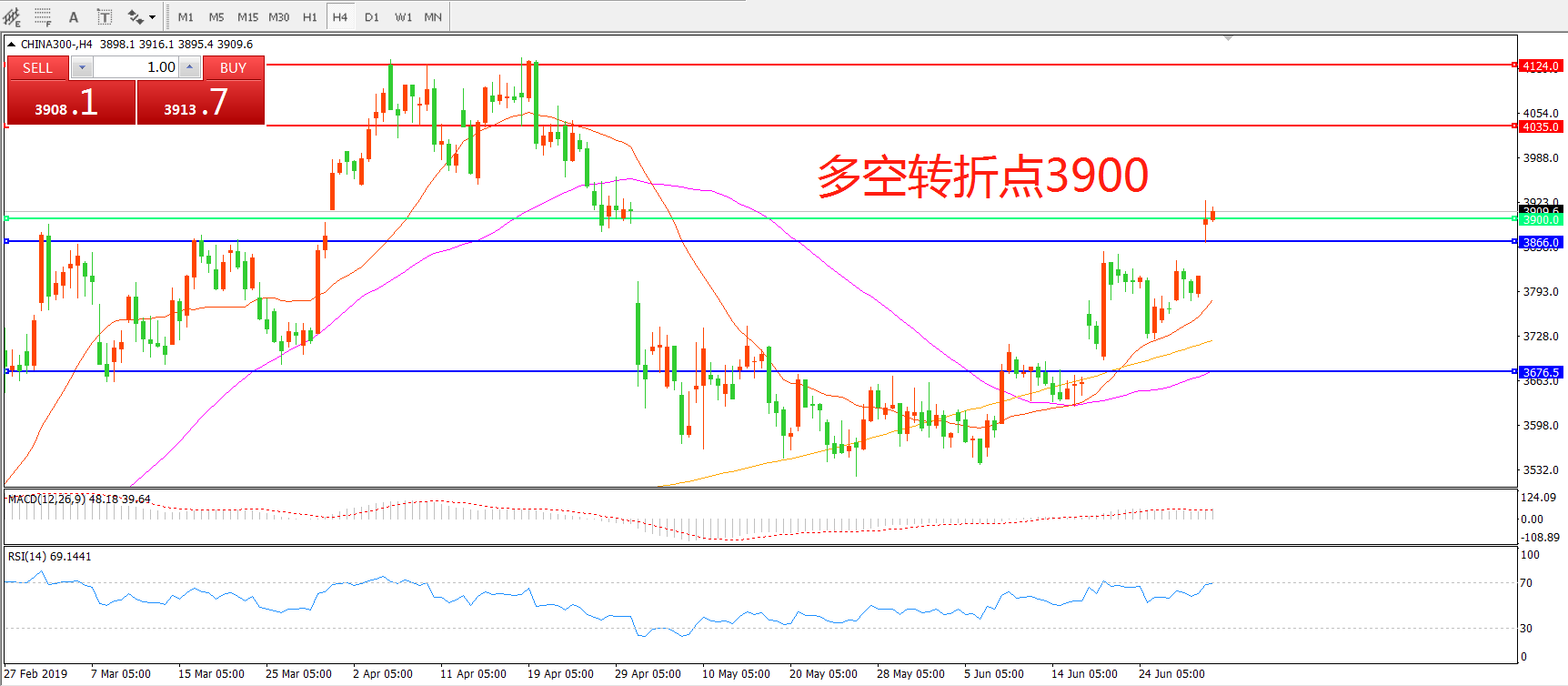 4小时图看,沪深300指数跳空高开后延续上行,表现强势 ,整体处于均线支撑之上,MACD红柱增加,RSI指标拐头向上,日内延续震荡上行概率较大。