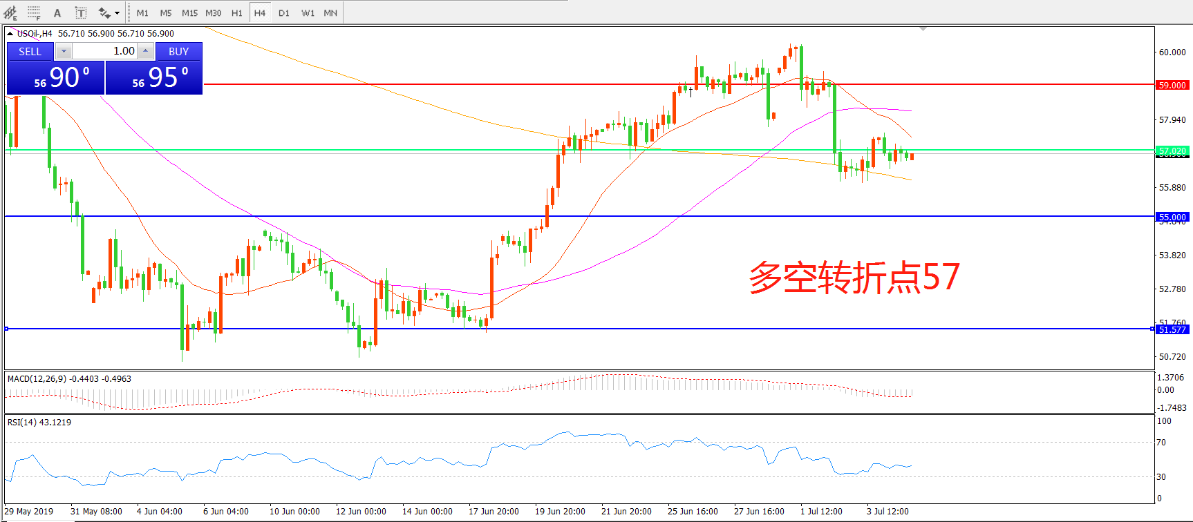 多空转折点:57.00