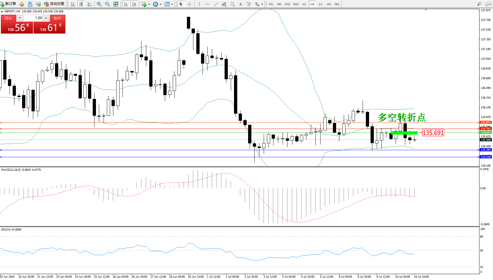 交易策略:135.691下方看跌,目标135.384、135.258