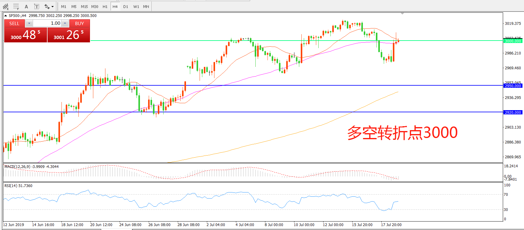 多空转折点:3000.00