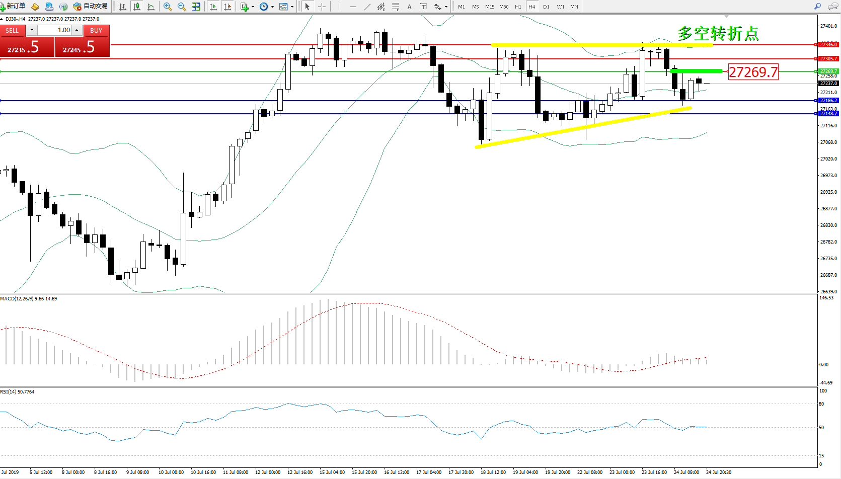 道琼斯指数7月24日(周三)收盘下跌79.20点,跌幅0.29%,报27269.97点。鉴于投资者已经完全计入了美联储的降息预期,因此在美联储下周会议并不同时发布“点阵图”的背景下,按预期降息的决定已不会对美元汇价带来太多的即刻负面影响,除非美联储果真能够大手笔一次降息50基点。
