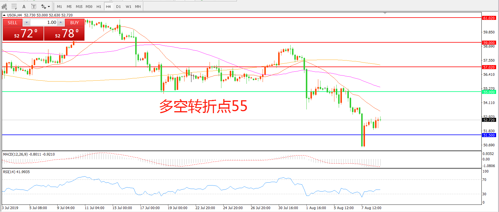 交易策略:在55.00之下看跌,目标51.50   49.50