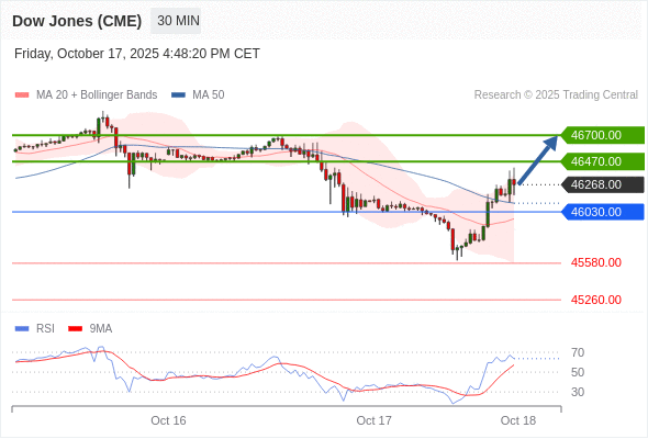 在 46030.00 之上,看涨,目标价位为 46470.00 ,然后为 46700.00 。