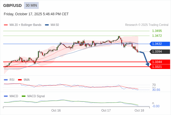 英镑/美元 当日内 : 看跌,在 1.3432 之下。