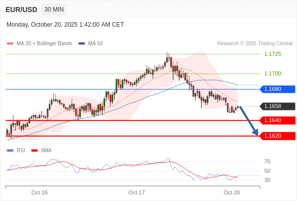 交易策略: 在 1.1680 之下,看跌,目标价位为 1.1640 ,然后为 1.1620 。