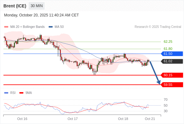 在 61.50 之下,看跌,目标价位为 60.15 ,然后为 59.55 。