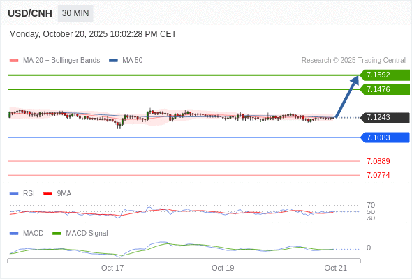 备选策略: 如跌破 7.1083 ,USD/CNH 目标方向定在 7.0889 和 7.0774 。