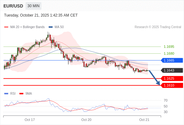 在 1.1665 之下,看跌,目标价位为 1.1625 ,然后为 1.1610 。