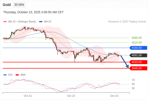在 4160.00 之下,看跌,目标价位为 4010.00 ,然后为 3945.00 。