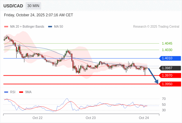 在 1.4010 之下,看跌,目标价位为 1.3970 ,然后为 1.3950 。