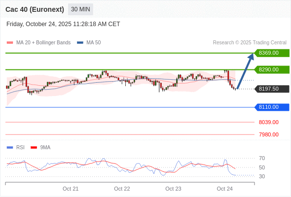 法国CAC指数期货 (Euronext) (X5) 当日内: 超短线(当日内)支撑位在8110.00附近。