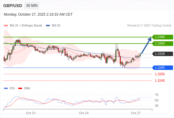 在 1.3285 之上,看涨,目标价位为 1.3360 ,然后为 1.3380 。