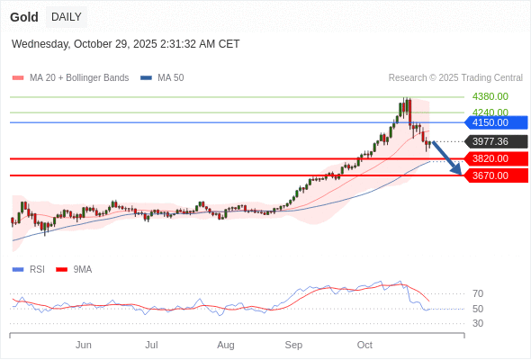 交易策略: 在 4150.00 之下,看跌,目标价位为 3820.00 ,然后为 3670.00 。