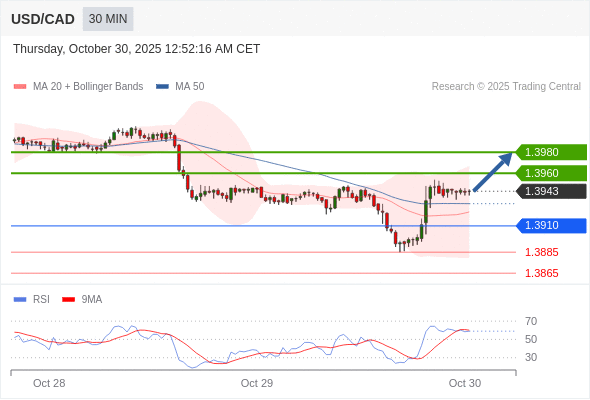 在 1.3910 之上,看涨,目标价位为 1.3960 ,然后为 1.3980 。