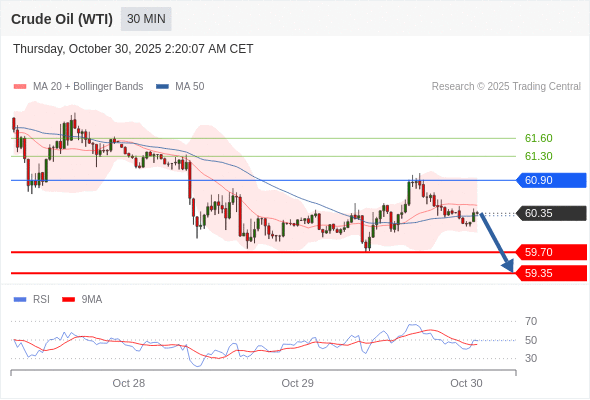 在 60.90 之下,看跌,目标价位为 59.70 ,然后为 59.35 。
