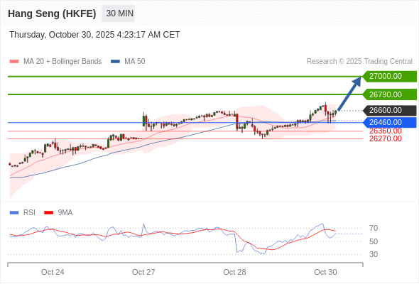 在 26460.00 之上,看涨,目标价位为 26790.00 ,然后为 27000.00 。