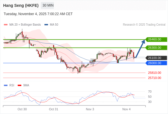 交易策略: 在 26000.00 之上,看涨,目标价位为 26300.00 ,然后为 26460.00 。