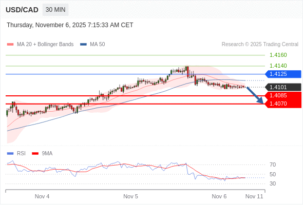 在 1.4125 之下,看跌,目标价位为 1.4085 ,然后为 1.4070 。