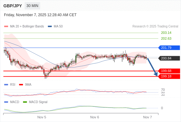 交易策略:当 201.79 维持阻力位时,存在回归 199.18 的风险。