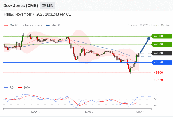 在 46850 之上,看涨,目标价位为 47300 ,然后为 47500 。