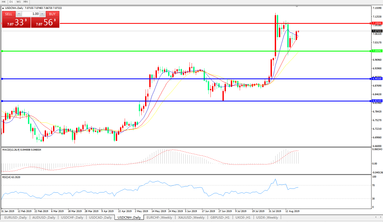 美元兑人民币USDCNH   日线图: