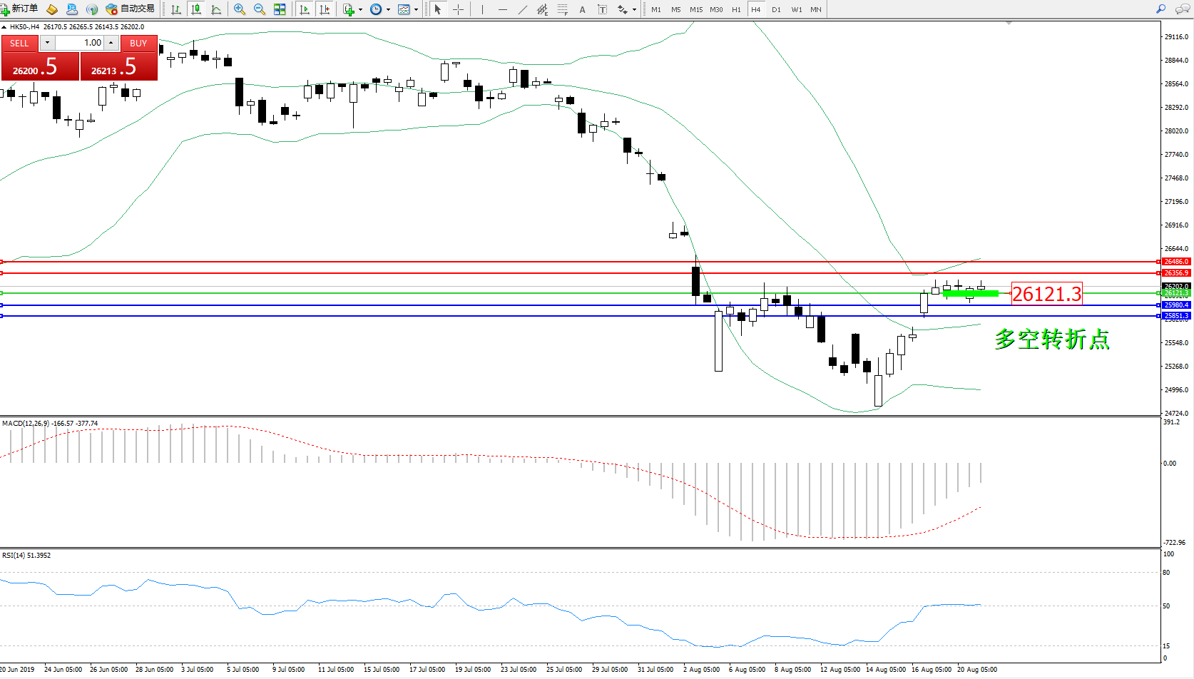 香港恒生指数8月21日(周三)收盘上涨38.50点,涨幅0.15%,报26270.04点;港股早上跟随低开71点后,再扩大跌幅,恒指低见26075,最多跌155点。以目前的估计计算,虽见便宜,但外围波动大,暂未见有好消息,仍有机会寻底。恒指现况将在26000点附近多空争夺,相信本月期结前或有望续反弹,特别是现时A股仍有望受惠内地政策消息层面及银根宽松度,从而拉动港股向上。本周五,美联储主席鲍威尔将在全球央行年会上发表讲话,此次讲话很可能会决定美联储接下来的计划,市场也是高度关注。