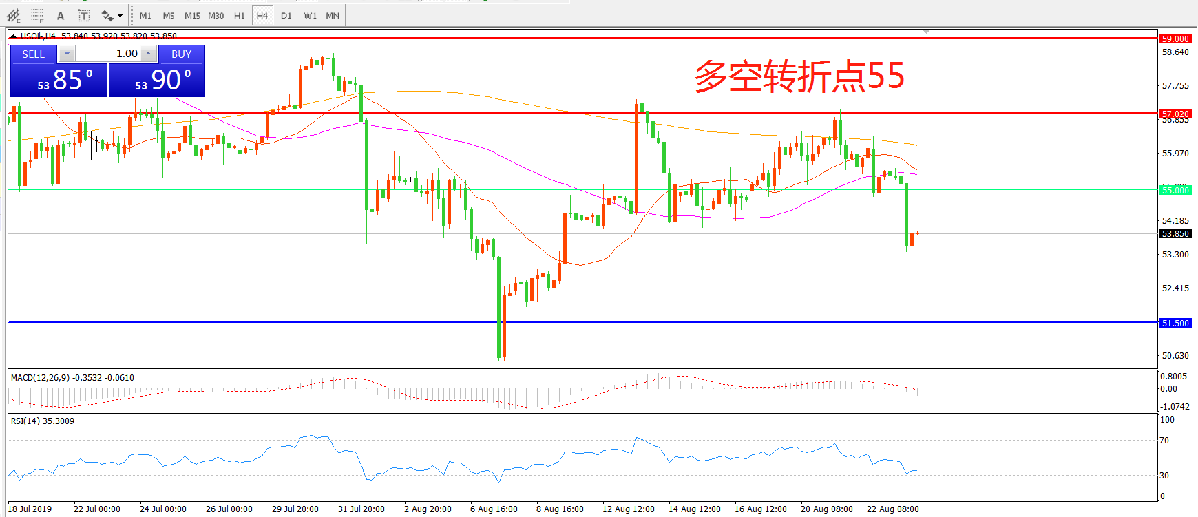 交易策略:在55.00之下看跌,目标51.50   49.00