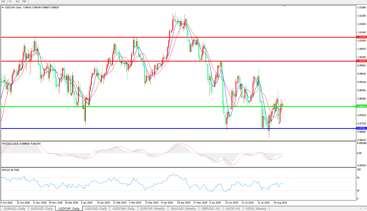 美元瑞郎USDCHF   日线图: