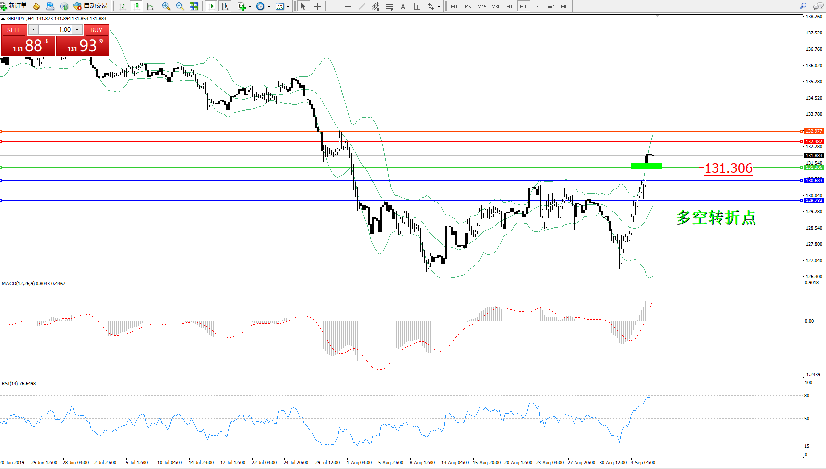 技术点评:探底V型反转上行后延续布林带指标上轨持续上行中,多头十分强势,没有出现止步迹象,MACD指标多头区域强势拉升走势持续,RSI指标多头区域即将触及超买区80均衡线位置附近徘徊;