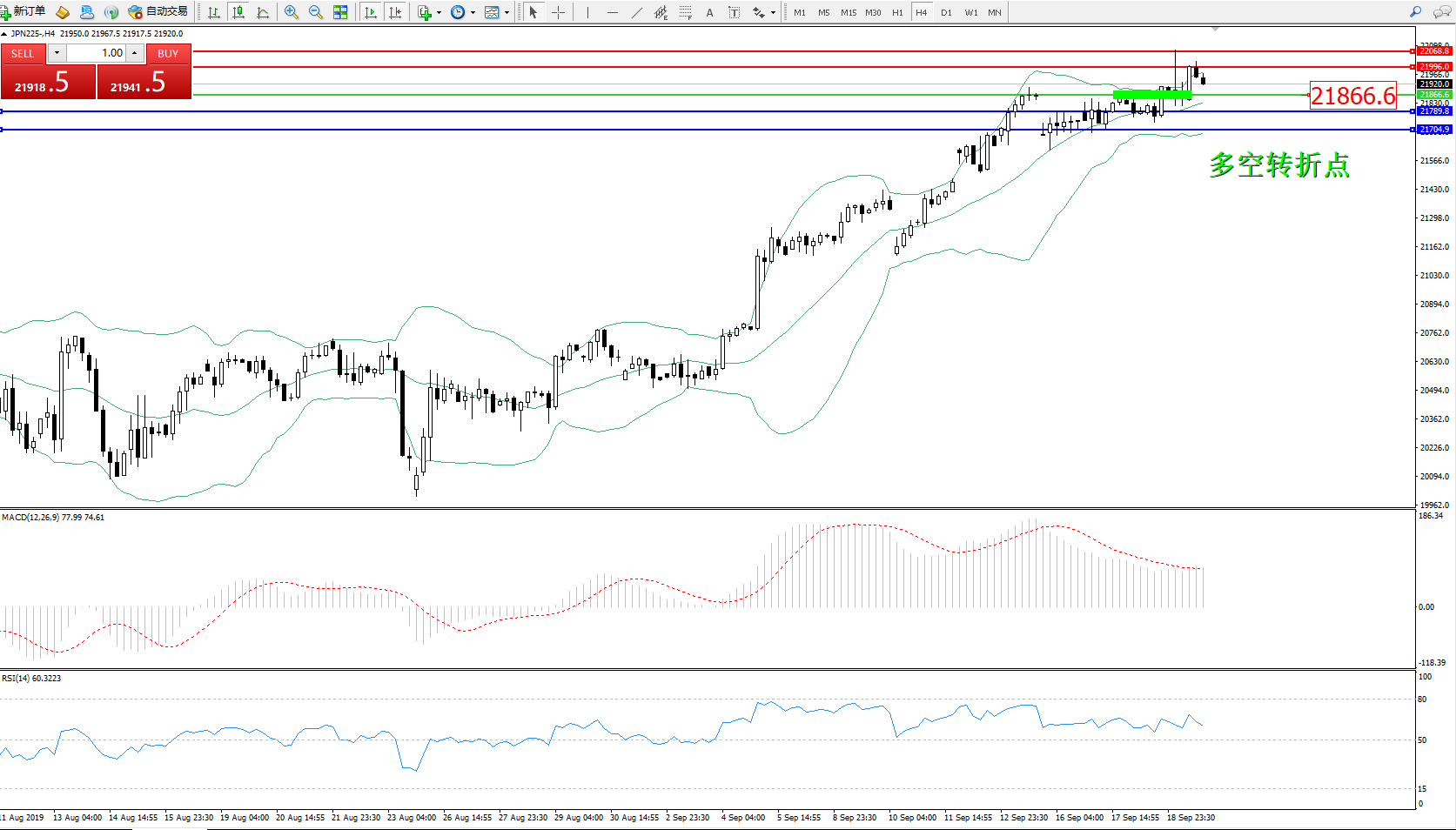日经225指数9月19日(周四)收盘上涨107.29点,涨幅0.49%,报22068.00点。日本央行维持基准利率为-0.1%不变。至少在2020年春季之前维持超低的利率。维持资产购买不变。日本央行近期不太可能进行额外宽松政策,但在10月底的会议上采取行动的可能性高。鉴于海外经济放缓和物价可能疲软,央行或将重新审视经济和物价状况。