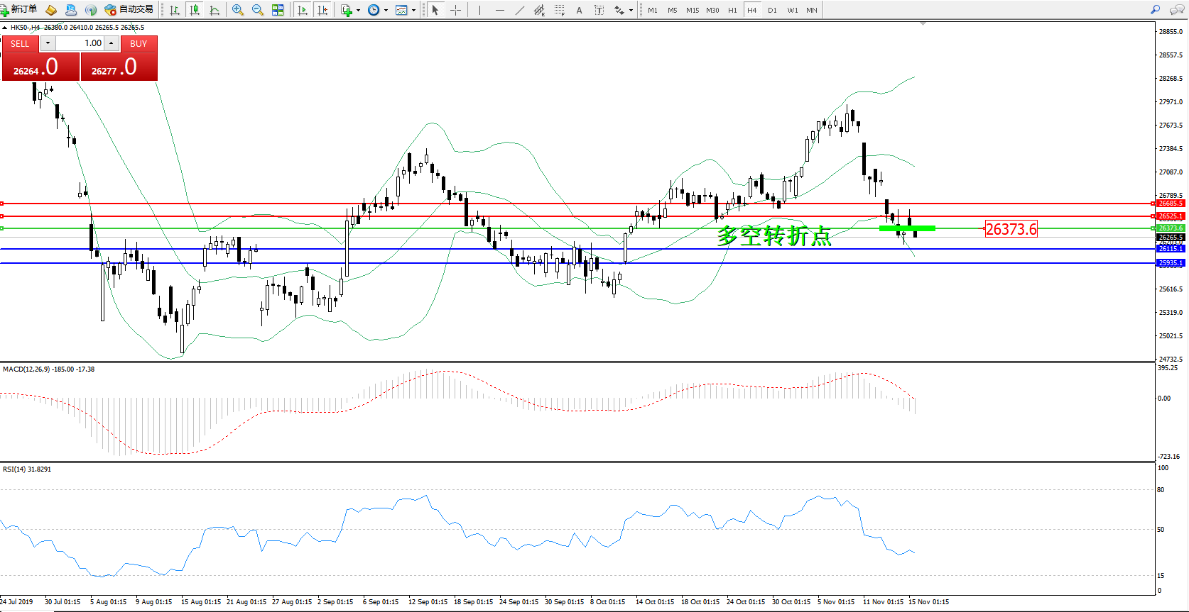 香港恒生指数1115日(周五)收盘上涨2.97点,涨幅0.01%,报26326.66点;港股高开后扩大升幅至26544。随后沽盘涌现,多重因素袭来,都令大市受压,料港股短期也不会有太大改善,恒指或下试26,000点水平,商务部公布10月份生产物价指数 PPI 按月升0.4%,略多过预期0.3%,是近6个月最大升幅。本周末也正是一些超预期或者黑天鹅披露的时间段,或许就在这周末会看到一些事情结果。