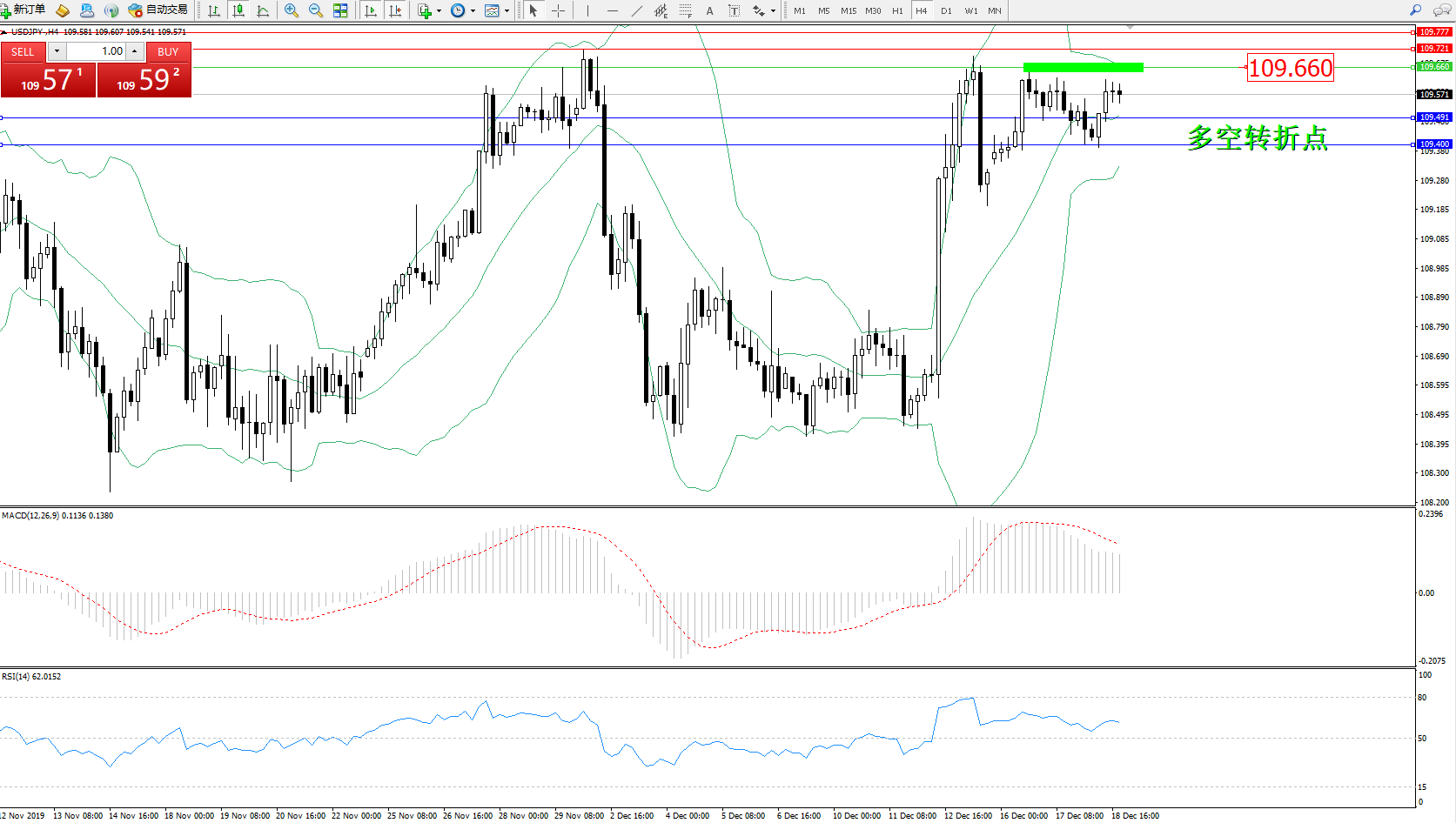 美元兑日元现报109.59,涨0.10%;日本政府上调明年经济增长预估,风险情绪或回暖,美元兑日元仍有续涨空间,内阁府预计2019财年和2020财年名义经济增速分别为1.8%和2.1%。名义增速预估提高,显示政府预期税收收入增加。日本经济再生大臣西村康稔表示,预计经济将复苏,主要受国内需求影响,刺激措施将起到帮助作用;虽然外部需求疲软,但由于就业和收入环境改善,日本经济获得温和复苏。此外,市场预期周四日本央行料将维持货币政策不变,因为政府的财政刺激计划以及国际贸易进展减轻了央行需要支撑经济的压力。