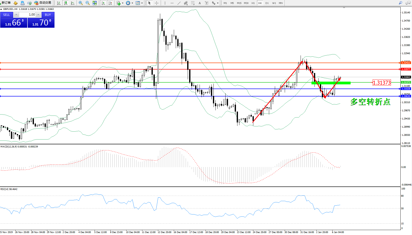 交易策略:1.31373上方看涨,目标1.320771.32422