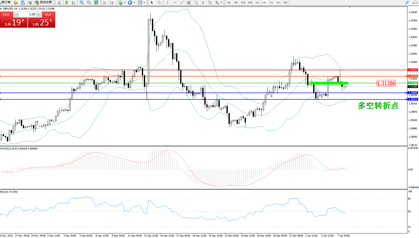 交易策略:1.31386下方看跌,目标1.30869、1.30523