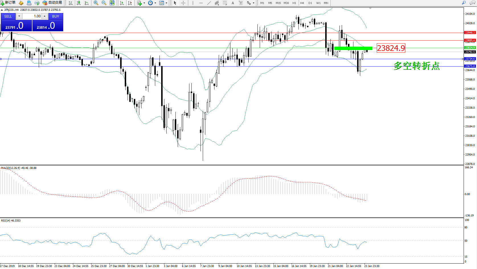 日经225指数123日(周四)收盘下跌236.35点,跌幅0.98%,报23795.00点。因受冠状病毒疫情消息发酵影响,日内亚洲股市普跌,日本12月出口连续第13个月减少,受对美国出口汽车、建筑和矿业机械下滑的拖累,表明外部需求疲弱正抑制依赖出口的日本经济。日本财务省周四公布的数据显示,12月出口较上年同期减少6.3%,降幅大于路透调查分析师预估的减少4.2%11月出口同比减少7.9%。上周签署的第一阶段贸易协议以及英国退欧有所进展,将有助缓和围绕全球贸易的担忧。全球贸易是驱动日本经济的一大力量。不过,最新数据显示萎缩步伐只是温和放缓,表明可能还需数月才能出现根基稳固的复苏。