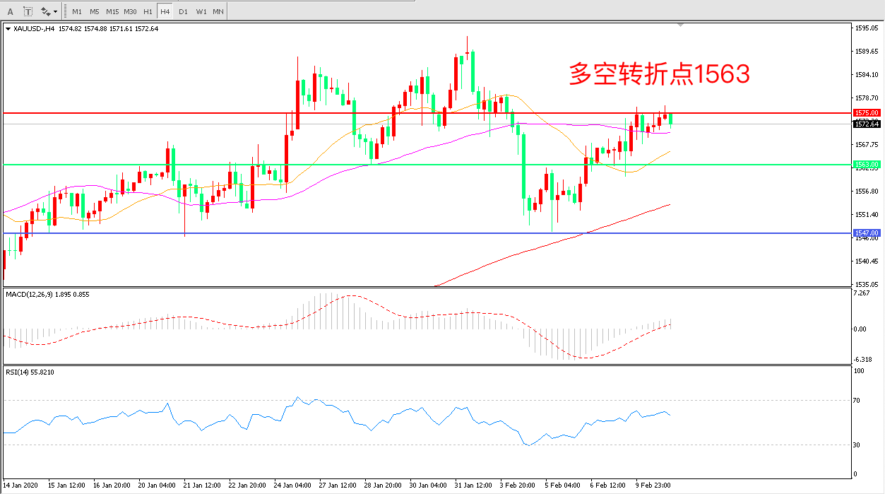 周一(2月10日),中国CPI数据创下新高,提升了黄金的抗通胀需求,但强势美元又对金价形成了打压,现货黄金触碰1575阻力后小幅回落,收报1571.73美元/盎司。多空交织的情况下,市场仍在等待进一步指引。今天美联储主席鲍威尔将向众议院金融服务委员会就半年度货币政策报告发表证词,务必重点关注。