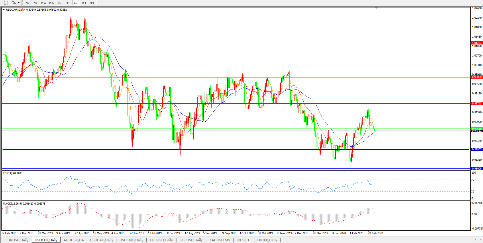 交易策略:0.9765下方看跌,目标0.9680、0.9600