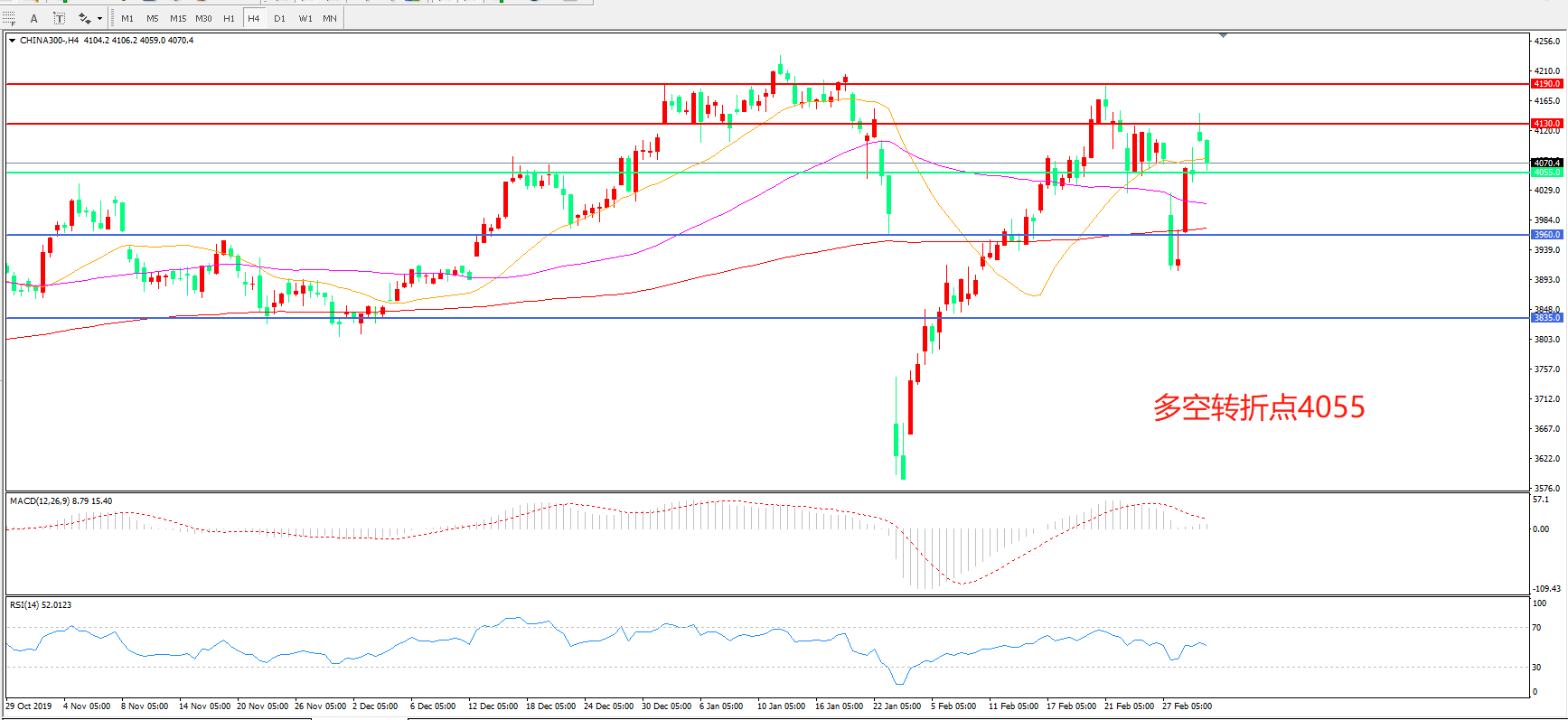 4小时图看,沪深300高开低走,但收盘价仍然高于前日,均线系统走平,MACD红柱减少,RSI指标走平,日内延续震荡概率较大。