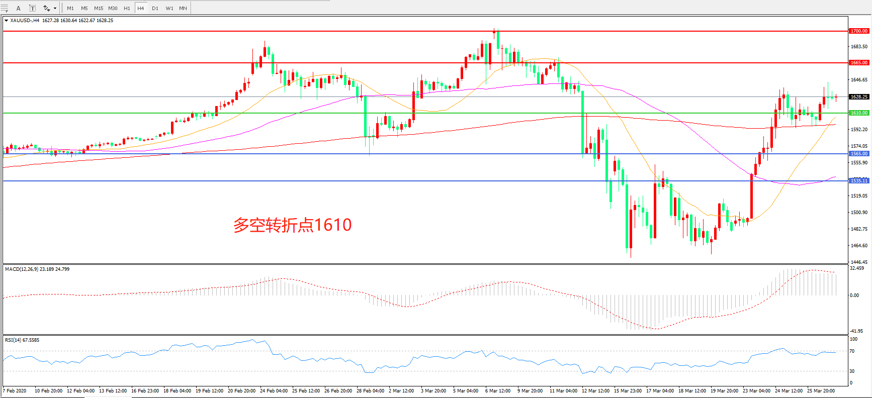 多空转折点:1610.00