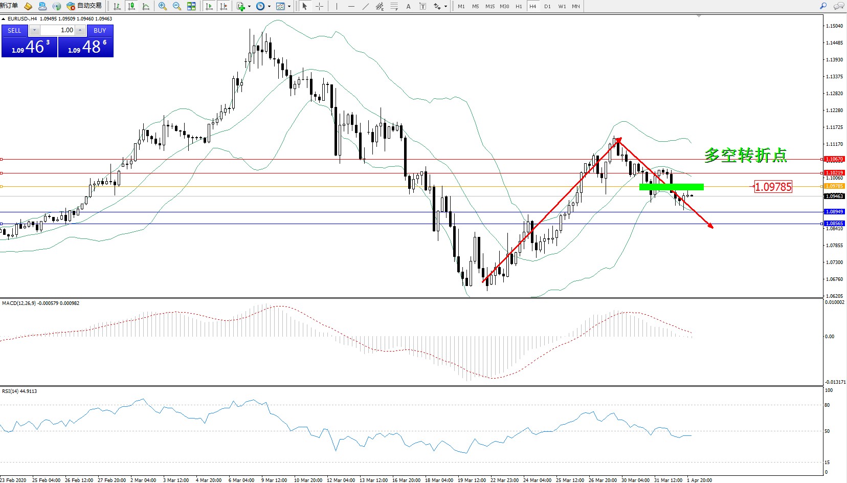 交易策略:1.09785下方看跌,目标1.08949、1.08565