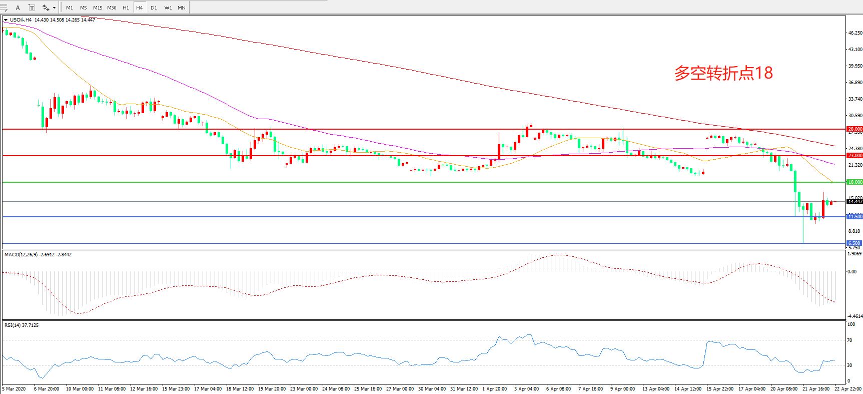 周三(4月22日),美国总统特朗普周三发表的推文使与伊美国朗的紧张关系加剧,为油价提供了支撑。特朗普发推称,如果伊朗在海上骚扰美国的船只,美国海军将击落并摧毁其炮艇。受此影响,陷入历史性崩跌浪潮的原油终于看到了一丝曙光,美国WTI原油大幅拉升40%, 收报14.36美元/桶。