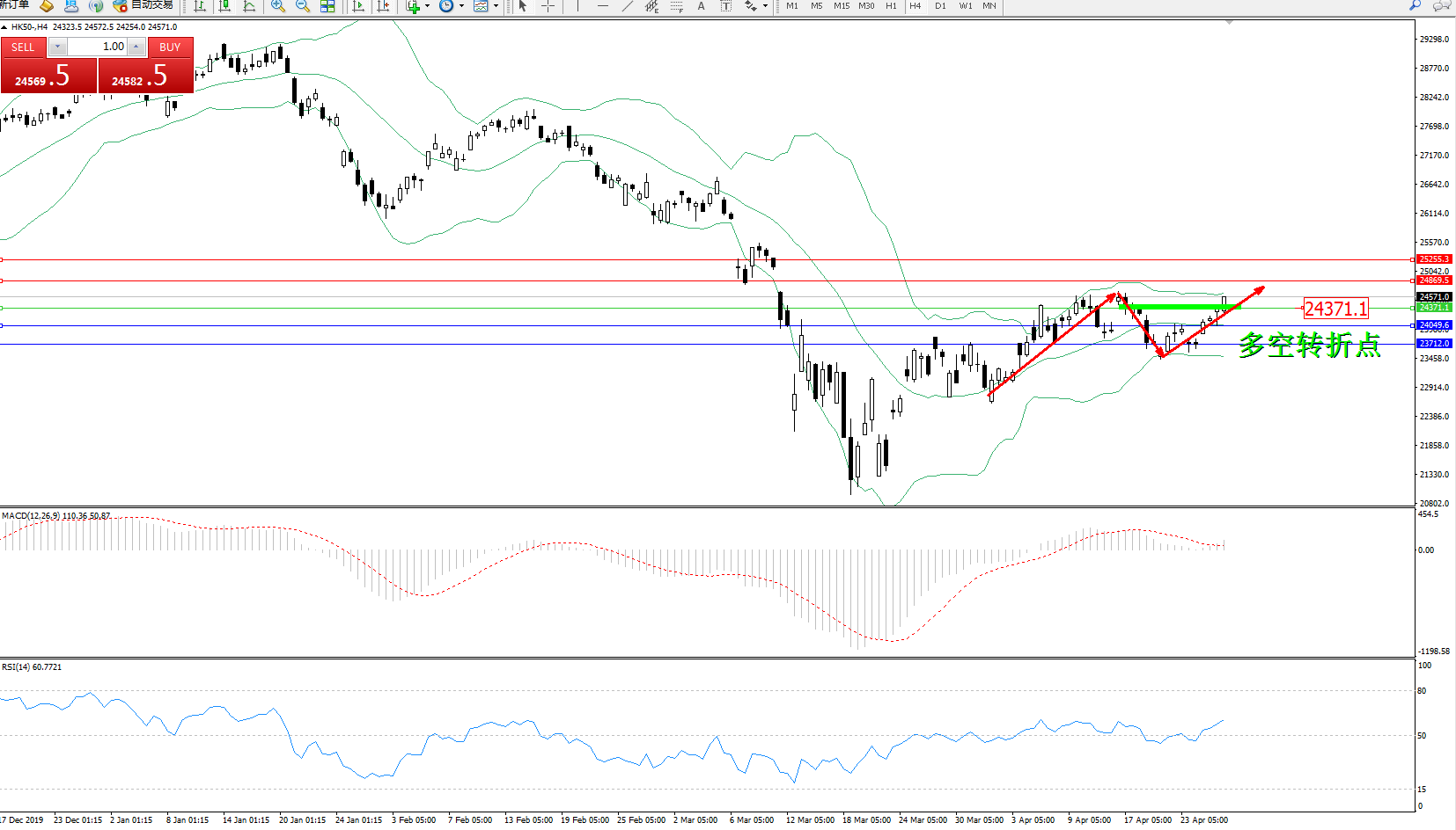 技术点评:多头动力长时间维持在布林带指标通道内侧不断宽幅震荡平移中,再次触及布林带指标上轨附近压制节点附近,多头有继续上攻态势,布林带指标呈持续平移走势中,MACD指标处于0轴线上方弱势整理后有缓慢上扬迹象,RSI指标处于50均衡线上方多头区域持续震荡上行态势良好;