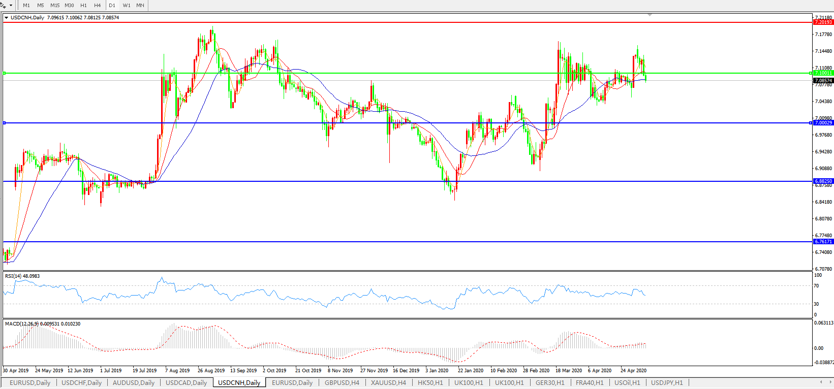 美元兑人民币USDCNH    日线图: