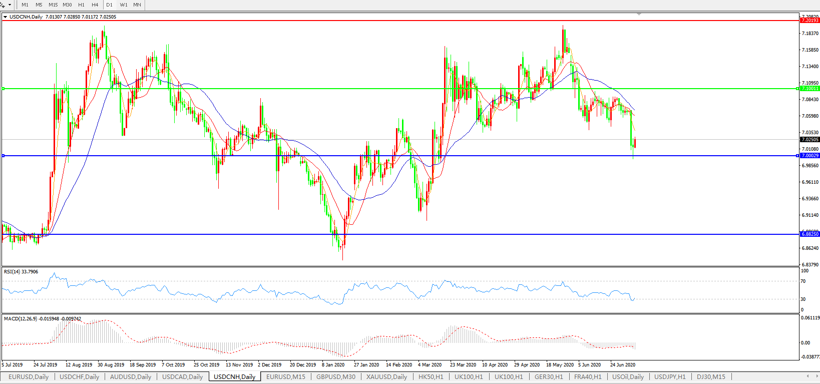 美元兑人民币USDCNH 日线图: