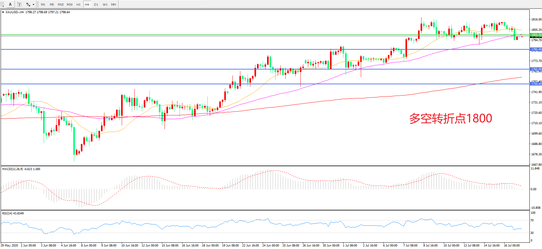 交易策略:在1800.00之上看涨,目标1820.00   1845.00