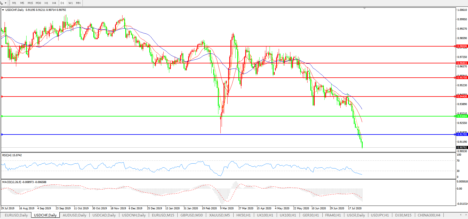 美元指数尾盘下跌0.35%,报92.94,本月势将下跌4.5%左右,这将是2010年9月以来最糟糕的月度表现。由于冠状病毒在美国各州的持续传播给经济带来重压,美元已经历了一个月的大跌,并有可能录得10年来最糟糕的月度表现。特朗普推迟大选的言论扭转了美元早些时候的反弹走势。Western Union Business Solutions资深市场分析师Joe Manimbo表示,美国任何形式的不确定性,无论是经济还是政治,都是卖出美元的借口。数据显示,美国经济在第二季度萎缩了32.9%,这是自大萧条以来的最大降幅。美国劳工部在另一份报告中称,7月25日止当周初请失业金人数经季节调整后增加1.2万人至143.4万人。Manimbo表示:“初请失业金人数数据告诉我们,复苏已经开始变得乏力。”Brown Brothers Harriman的Win Thin表示,疲软的数据提供了另一个抛售美元的借口。值得注意的是,在近期的几波避险市况中,美元都表现不佳;美国经济刺激方案的前景日益恶化,加剧了人们的忧虑。每周多出的600美元失业金将在明天到期,而且看不到任何延长的前景。这个巨大的经济刺激将会消失。